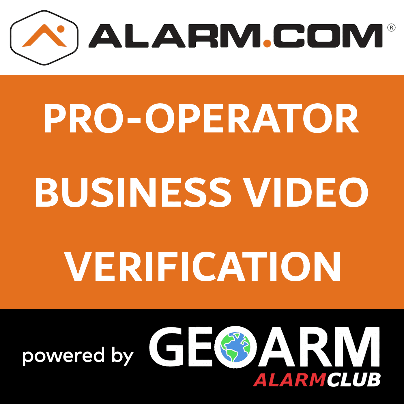 The Alarm.com visual video verification services allow GeoArm central station operators to visually verify an alarm signal, using all Alarm.com cameras and image sensors. Must send signals to a central station, like GeoArm, that supports this functionality.