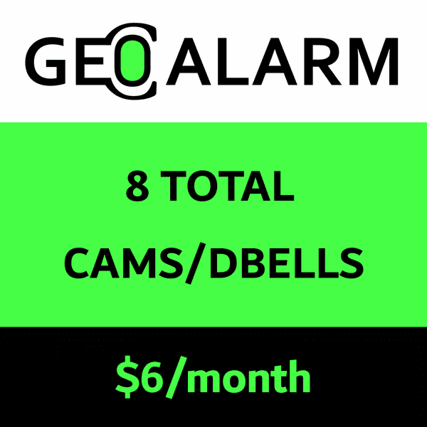 *Please Note: This add-on service should be ordered to upgrade an existing GeoAlarm gold level alarm monitoring plan, that has in excess of two (2) combined security cameras or video doorbells that comes included. You can add six (6) extra security cameras or video doorbells for a maximum of eight (8) total on one GeoAlarm account.