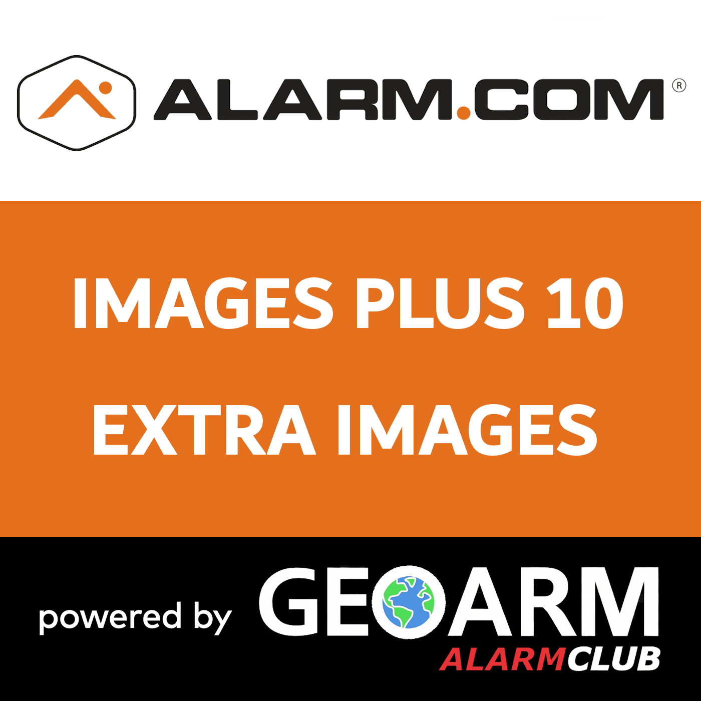 Available as an add-on to the Alarm.com Images Plus Plan on AlarmClub. This Alarm.com sensor activity monitoring plan allows for 2,400 broadband uploads and 240 broadband/cell uploads additional images to be uploaded per month. Capture and upload up to a total of 50 motion-activated images per Alarm event, across all image-capturing devices (including panel cameras and image sensors).